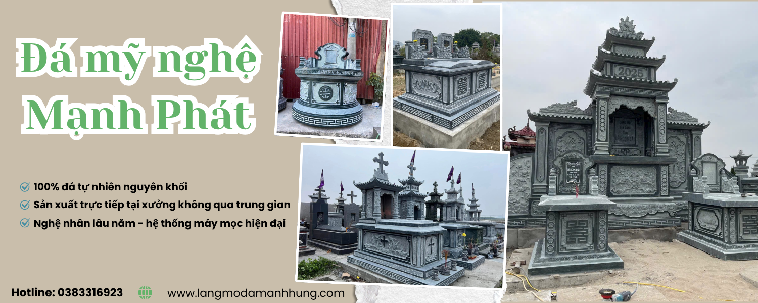 Nói đến làng nghề đá Ninh Vân, chắc hẳn ai cũng biết đến cơ sở Đá Mỹ Nghệ Mạnh Phát. Đây là 1 đơn vị sản xuất tiêu biểu trong làng nghề, và đã có truyền thống lâu đời với ba thế hệ cùng làm nghề đá vẫn đang sinh sống, làm việc cùng nhau. Cơ sở đá mỹ nghệ Mạnh Phát là địa chỉ uy tín chuyên chế tác và lắp đặt các công trình lăng mộ đá trên khắp cả nước. Người sáng lập và điều hành cơ sở là nghệ nhân Mạnh Hùng – người vừa là chủ xưởng, vừa trực tiếp tham gia chế tác với hơn 10 năm kinh nghiệm trong nghề. Sinh ra và lớn lên trong gia đình có truyền thống làm đá, từ nhỏ ông Mạnh Hùng đã theo chân cha học nghề, hun đúc niềm đam mê với đá mỹ nghệ và khát vọng gìn giữ, phát triển nét đẹp văn hóa tâm linh của dân tộc. Trải qua hơn một thập kỷ làm nghề, nghệ nhân Mạnh Hùng đã chế tác hàng nghìn sản phẩm lăng mộ đá tinh xảo, mang đậm giá trị tâm linh và nghệ thuật. Các công trình do cơ sở Mạnh Phát thực hiện đã có mặt tại hầu hết 64 tỉnh thành trên cả nước, từ những công trình quy mô nhỏ đến các khu lăng mộ lớn, phức tạp. Với mong muốn đưa nghệ thuật lăng mộ đá lên một tầm cao mới, nghệ nhân Mạnh Hùng không ngừng đầu tư mở rộng nhà xưởng khang trang, trang bị hệ thống máy móc hiện đại và kết hợp cùng đội ngũ thợ lành nghề. Nhờ đó, mỗi sản phẩm của Mạnh Phát không chỉ đảm bảo chất lượng bền vững theo thời gian mà còn mang tính thẩm mỹ cao, đáp ứng yêu cầu khắt khe của khách hàng trên khắp cả nước. Hotline: 0383.316.923 - 0978.279.941 - Địa chỉ: Làng nghề chế tác lăng mộ đá Ninh Vân - Xã Ninh Vân - TP Ninh Bình - Tỉnh Ninh Bình Mạnh Phát – Tâm huyết trong từng đường nét, vững bền cùng năm tháng.