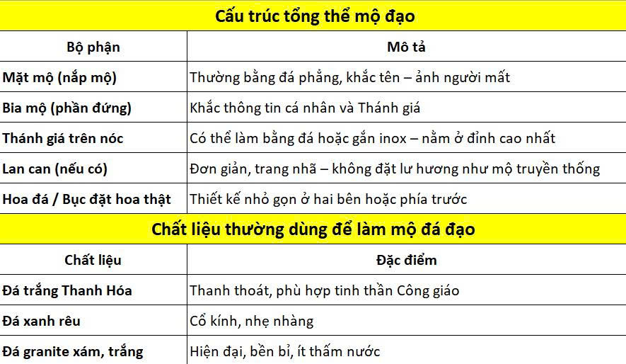 Mộ đá đạo là loại mộ được làm từ đá tự nhiên (thường là đá xanh, đá trắng, hoặc đá granite) dành cho người theo đạo Thiên Chúa, với các chi tiết trang trí và biểu tượng đặc trưng của đạo như thánh giá, thiên thần, hoa huệ, Kinh ThánhXưởng đá mỹ nghệ Mạnh Phát -  0383316923 Tại Làng nghề Ninh Vân - Ninh Bình luôn có sẵn những mẫu mộ đá đạo chất lượng - kiểu dáng hiện đại - sang trọng thể hiện nét tâm linh trong thờ cúng Việt Nam.